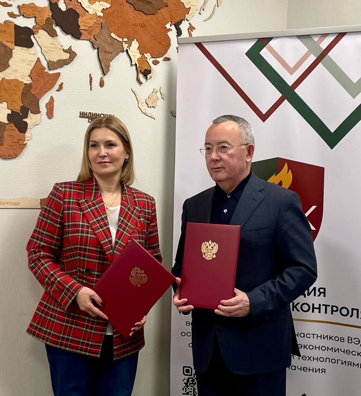 На фото: президент Ассоциации Александр Петрович Моисеев и проректор по учебной работе Университета Татьяна Валерьевна Новикова